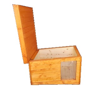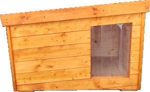 Alle Hundehütten von DONN sind wärmegedämmt, und jetzt sind das aufklappbare Dach und der Thermovorhang auch noch als GESCHENK dabei.
