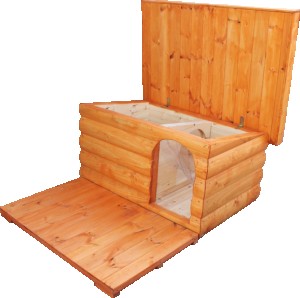Unsere isolierten Hundehütten halten im Innenraum eine Temperatur, die im Vergleich zur Außentemperatur um 5–12 °C angenehmer ist.